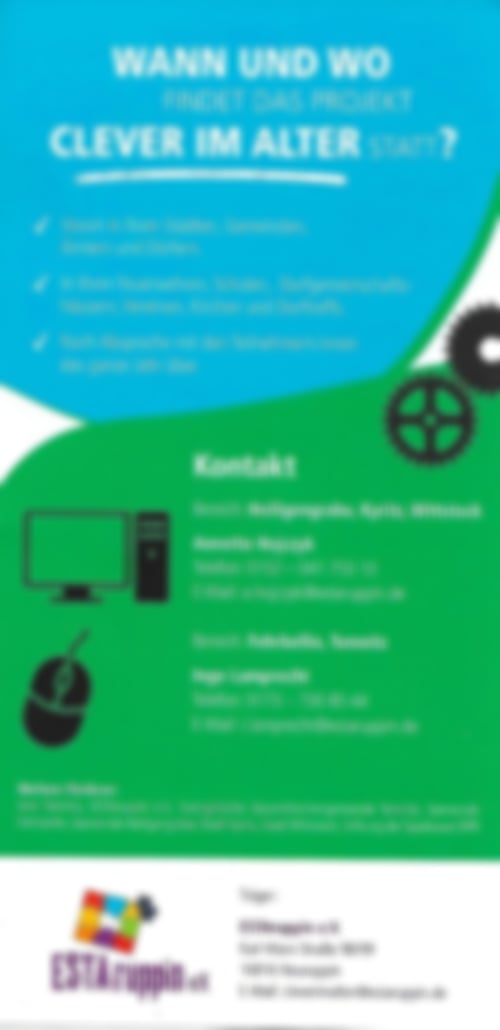 CLEVER im ALTER heißt das neue Projekt, welches ESTAruppin seit Oktober 2022 für Sie im Angebot hat. Unter anderem stellt die Digitalisierung die ältere Generation vor große Herausforderungen.